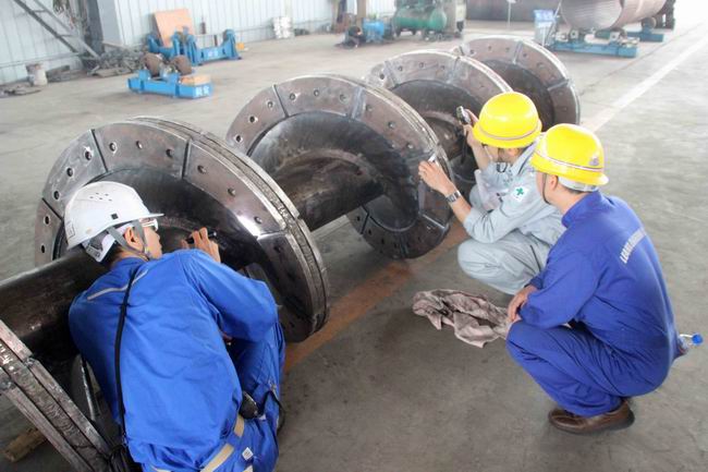 本次項(xiàng)目螺旋機(jī)直徑達(dá)Φ1020mm,長(zhǎng)達(dá)16.4米,為公司歷次制造的螺旋輸送機(jī)之最,因施工線路地質(zhì)條件復(fù)雜、磨耗嚴(yán)重,JTSC設(shè)計(jì)部對(duì)螺旋輸送機(jī)抗磨部分進(jìn)行了前所未有的加強(qiáng)設(shè)計(jì),制造難度空前。接到訂單后,公司組織精兵強(qiáng)將一面展開(kāi)生產(chǎn),一面積極攻關(guān),克服種種困難,創(chuàng)新改進(jìn)工藝方案,解決了高硬度筒體內(nèi)襯貼敷、螺旋葉片HARDOX500鋼板壓型及貼敷、特種進(jìn)口耐磨堆焊施工等一道道難題,保質(zhì)保量完成了訂單任務(wù),產(chǎn)品質(zhì)量受到JTSC方面充分肯定。這標(biāo)志著公司的制造水平又上新臺(tái)階,增強(qiáng)了核心競(jìng)爭(zhēng)力,為爭(zhēng)取更多的出口訂單打下堅(jiān)實(shí)基礎(chǔ)。